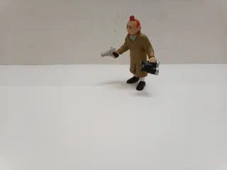 Figura de PVC del personaje Tintín, conocido por sus aventuras de detective. - Material: PVC. - Personaje: Tintín. - Diseño: Detective.