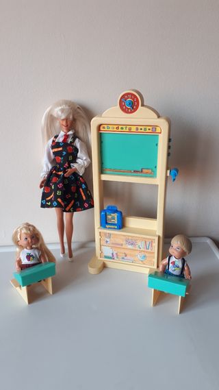 Muñeca Barbie teacher, sin defectos de maquillaje, pies y manos sin marcas, cuello sin grietas, pelo limpio y desenredado. Los niños también están muy bien conservados. Los zapatos no son los originales. La pizarra funciona. No negociable, no reservo, envío sólo por la aplicación. muñeca de goma muñeca muñecas muñecos juguetes juegos Mattel polly pocket pollypocket antigu retro vintage viejo antigua Chanel Nancy licca Paola Reina y Corolle Monster high ever figura figuras funko pop Disney animator princesa hada madrina Príncipe princesas