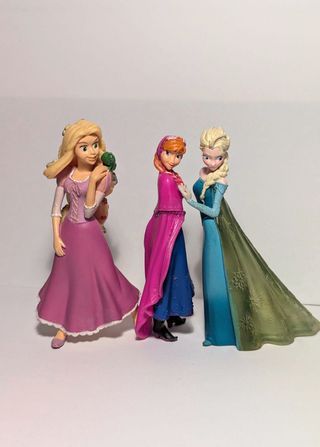 Pack de 3 figuras de goma PVC de princesas Disney fabricadas por Bullyland, pintadas a mano -Rapunzel (Enredados, Tangled) -Elsa de Arendelle (Frozen) -Anna de Arendelle (Frozen) En buen estado de conservación como se ve en las fotos