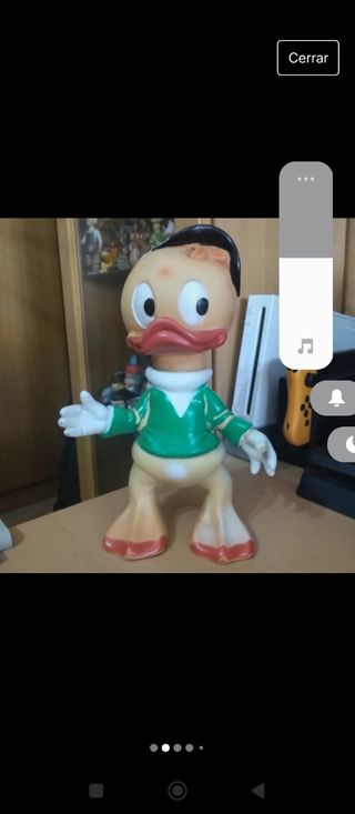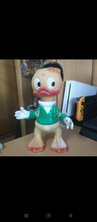 Figura de goma del sobrino del pato Donald de la marca italiana Ledra plastic walt Disney en buen estado para el tiempo que tiene. El pitido no le funciona .24cm de altura
