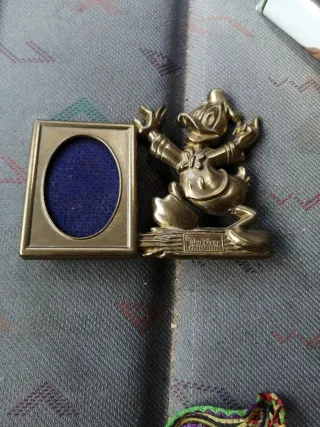 Portafotos vintage con figura de Donald de Disney. Ideal para coleccionistas. - Material metálico. - Diseño de Donald. - Marco ovalado.