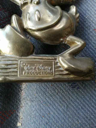 ¿Eres fan de Disney o coleccionista de piezas únicas? Te presento una joya auténtica: escultura de Mickey Mouse en metal fundido, con base de madera y sello original Walt Disney Productions. ¡Una pieza con historia! 🕰️ Fabricada antes de 1986, cuando Disney aún firmaba como Walt Disney Productions. Por su forma y trazado se estima que sea entre 1930 y 1940. 🏭 Creada por Dunstan Productions, fabricante poco común con licencia oficial. 🎨 Diseño clásico, pose alegre, orejas icónicas y acabado envejecido que enamora. 📏 Tamaño: 8 cm. Perfecta para vitrinas, estanterías o rincones especiales.