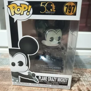 Figura Funko Pop! de Mickey Mouse en su versión Plane Crazy. - Número de figura: 797. - Edición especial Walt Disney Archives 50th Anniversary. - Diseño en blanco y negro inspirado en la animación clásica.