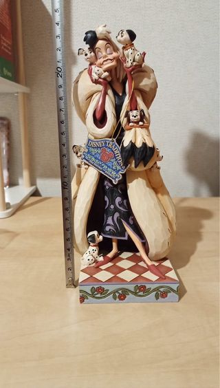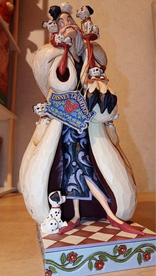 Figura de colección de Cruella de Vil, de la película 101 Dálmatas. personaje icónico de Disney. La figura está bellamente detallada, capturando la esencia del personaje con su característico abrigo y rodeada de cachorros dálmatas. - Material resina de piedra pintada a mano. - Exclusiva de 50 aniversario de la película. - Nueva en caja, de mi colección personal. (Descatalogada) - Base decorada con un patrón de tablero de ajedrez y motivos florales. -Disney Traditions by Jim Shore llamada "Fur Lined Diva". Se graba vídeo del embalaje y de la figura por posibles disputas y estafas.