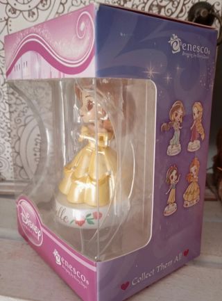 Preciosa figura de Bella, de Disney, de la marca Enesco. Es una pieza pequeña y encantadora, ideal para coleccionistas. Meticulosamente detallada.Diseño elaborado por Grand Jester Studios. Material resina.Nueva caja sellada Figura de Bella de Disney.