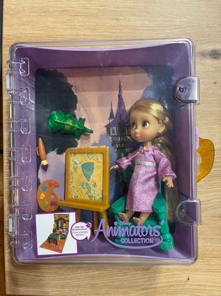 Maletín de la colección Disney Animators de Rapunzel. Incluye accesorios para pintar y un escenario. Sin usar. Fue abierto y ni siquiera se usó el pop up interior. Lo he medio desplegado para las fotos. Maletin en perfectas condiciones y con todos los accesorios que traid - Muñeca Rapunzel. - Caballete con cuadro. - Paleta de pintor. - Pincel. - Figura de Pascal. - Escenario pop-up.