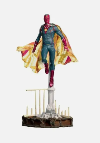 Vendo figura de coleccionista Vision Halloween versión de WandaVision (Marvel Studios/Disney+), escala 1/10 Art Scale por Iron Studios. Altura: ~22 cm (incluyendo base). Materiales: poliresina de alta calidad con tela en la capa amarilla. Inspirada en el icónico episodio de Halloween, con disfraz de luchador mexicano, shorts deportivos y calcetines amarillos. Detalles hiperrealistas de Paul Bettany