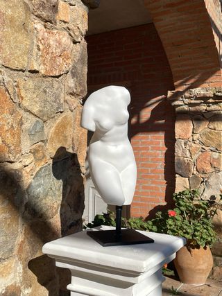 🛠️ Detalles del Producto Tipo: Torso decorativo de escayola Figura: Torso femenino de Afrodita Estilo: Arte clásico grecorromano Material: Escayola de alta calidad, Peana de Hierro Acabado: Blanco con detalles finos Dimensiones: Ancho: 14 cm, Alto: 41 cm, Fondo: 14 cm Peso: Aproximadamente 6 kg (dependiendo de cada pieza) Hecho a mano: Cada pieza es única y puede presentar ligeras variaciones naturales del proceso artesanal 🧼 Cuidados Limpiar con paño seco o plumero suave Evitar exposición al agua para mantener la calidad del material No usar productos abrasivos