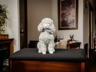 Figura en escayola SIN PINTAR, raza Caniche gigante o Poodle, si lo prefiere se puede pintar y personalizar por 28€ "ejemplo quinta/sexta foto, o 38€ con base hecha en impresión 3D "véase última foto" Altura 14 cm Ancho 11 cm Profundidad 14 cm Peso 730 gramos Razas disponibles en mi perfil ⬇️ -SHIT TZU -YORKSHIRE TERRIER -HUSKY -POMERANIA -COCKER -BULLDOG FRANCÉS -PUG -CANICHE -SHAR PEI
