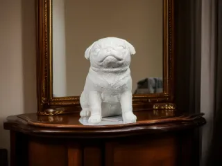Figura Raza Pug en escayola SIN PINTAR, si lo prefiere se puede pintar y personalizar por 28€ "ejemplo cuarta/quinta foto, o 38€ con base hecha en impresión 3D "véase última foto" Altura 15 cm Ancho 12 cm Profundidad 15 cm Peso 660 gramos Razas disponibles en mi perfil ⬇️ -SHIT TZU -YORKSHIRE TERRIER -HUSKY -POMERANIA -COCKER -BULLDOG FRANCÉS -PUG -CANICHE -SHAR PEI