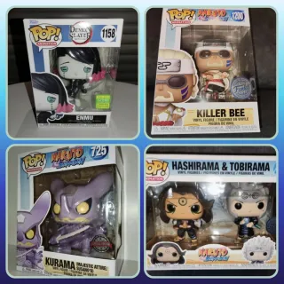 Pack de 4 figuras Funko Pop! de anime. - Funko Pop! Enmu (Demon Slayer) #1158 (Summer Limited Edition). - Funko Pop! Killer Bee (Naruto Shippuden) #1200 (Special Edition). - Funko Pop! Kurama (Naruto Shippuden) #725 (Special Edition). - Funko Pop! Hashirama & Tobirama (Naruto Shippuden).