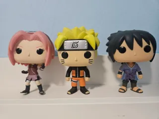 Vendo 3 figuras de Naruto estilo Funko: - - - Naruto - Sasuke - Sakura Buen estado general, han estado expuestas en estantería. Precio individual: 4 € cada una. Precio pack completo: 12 €.