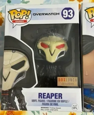 Dos figuras Funko Pop de Overwatch, Pharah y Reaper. Ambas son exclusivas de BoxLunch y Blizzard. Bundle Funko POP exclusive BlizzCon Blizzard 2016 Pharah blue #95 and Reaper Red Eyes #93 BoxLunch Overwatch D.Va, Doomfist, Junker Queen, Mauga, Orisa, Reinhardt, Roadhog, Sigma, Winston, Wrecking Ball, Ana, Ashe, Baptiste, Bastion, Brigitte, Cassidy, Echo, Emre, Freja, Genji, Hanzo, Hazard, Illari, Jetpack Cat, Juno, Junkrat, Kiriko, Lifeweaver, Lúcio, Mei, Mercy, Mizuki, Moira, Pharah, Ramattra, Reaper, Sojourn, Soldado: 76, Sombra, Symmetra, Torbjörn, Tracer, Venture, Widowmaker, Wuyang, Zarya, Zenyatta, Anran, Domina, Vendetta