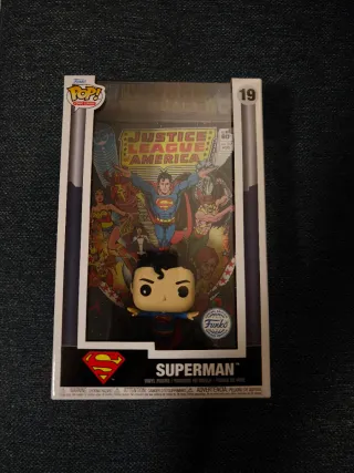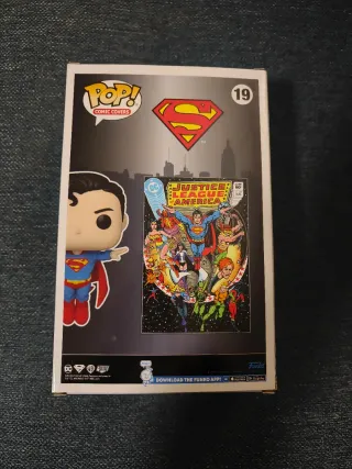 Figura Funko Pop de Superman, número 19 de la colección Comic Covers. Representa la portada del cómic Justice League of America. - Figura de vinilo. - Edición especial. - Incluye caja protectora.