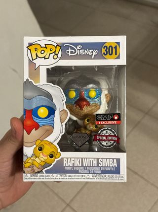 Figura Funko Pop! de Rafiki con Simba, número 301 de la colección Disney. Edición especial. - Figura de vinilo. - Incluye adhesivo Diamond Exclusive y Special Edition.