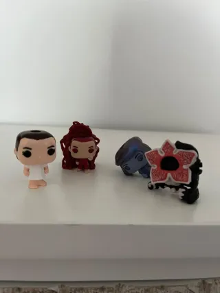 Lote de figuras Funko Pop de la serie Stranger Things. Incluye 4 figuras. - Figuras de vinilo coleccionables. - Personajes de la serie. - Diseño estilizado característico de Funko Pop. - 2 euros cada 1