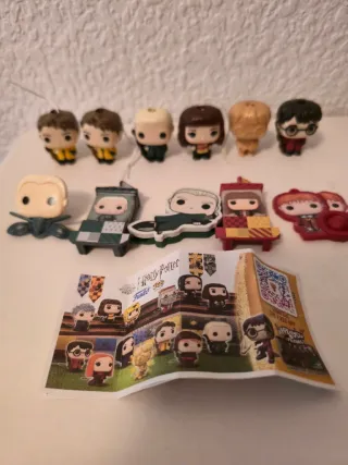 Colección de figuras de Harry Potter, estilo Funko Pop, inspiradas en los huevos Kinder. - 11 Figuras de personajes icónicos de Harry Potter. 1 repetida. - Incluye folleto informativo de la colección. No vendo sueltos.