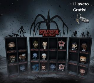 Expositor para figuras Funko Pop de Stranger Things. Ideal para coleccionistas. - Diseño inspirado en la serie. - Incluye espacio para múltiples figuras. - Incluye llavero de regalo.