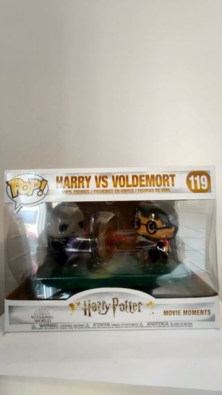 Figura Funko Pop de Harry Potter contra Voldemort, número 119 de la serie Movie Moments. - Representa el icónico enfrentamiento entre Harry y Voldemort. - Parte de la colección Wizarding World de Harry Potter. - Incluye la caja original. -Precio negociable