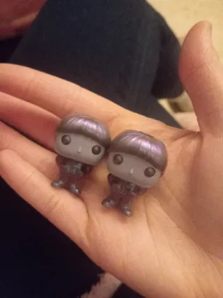 Lote de figuras Funko Pop. - Figura de personaje con traje blanco y negro. - Figura de personaje azul con tentáculos. - Accesorio azul. - Dos figuras de personajes morados. - Figura de personaje con sombrero. -vendo o intercambio.