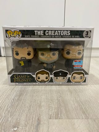 Set de 3 figuras Funko Pop de The Creators de Game of Thrones. Edición limitada Fall Convention Exclusive. - La caja tiene algunos daños que se pueden ver en la fotografias del anuncio pero las figuras nunca de han sacado de la caja. - Figuras de vinilo. - Incluye 3 figuras. - Basado en Game of Thrones. - “SE HACEN ENVIOS”. Tag: Viserys, Targaryen, Jon Nieve, Tyrion, Lannister, Bran, Stark, Cersei, Arya, Jaime, eddard, Sansa, Theon, Greyjoy, Sanwell Tarly, Jorah, Mormont, Oberyn Martell.
