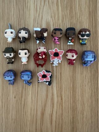 Colección de figuras Funko Pop de Stranger Things, provenientes de Kinder Joy. Incluye varios Once, Max del revés y muchos más. - Figuras coleccionables. - Personajes de Stranger Things. - Edición especial Kinder Joy. - Tienen sus cuerdas y folletos de cada figura. - 2 euros por figura individual. - 20 euros por toda la colección.