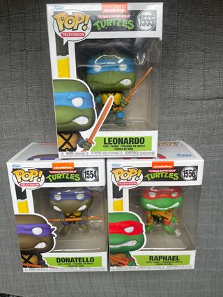 Se venden dos figuras Funko Pop! de las Tortugas Ninja. - Figura de Donatello, número 1609. - Figura de Raphael, número 1612. - Ambas figuras son de vinilo.