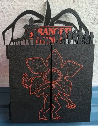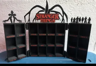Expositor plegable de funkos temático de Stranger Things, ideal para coleccionistas. Fabricado con impresora 3D - Diseño inspirado en la serie. - Perfecto para organizar y exhibir figuras. - No incluye funkos