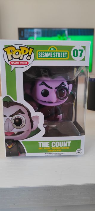 Figura coleccionable de El Conde de Barrio Sésamo. - Personaje: El Conde. - Serie: Barrio Sésamo. - Número de figura: 07. - Tipo: Vinilo.