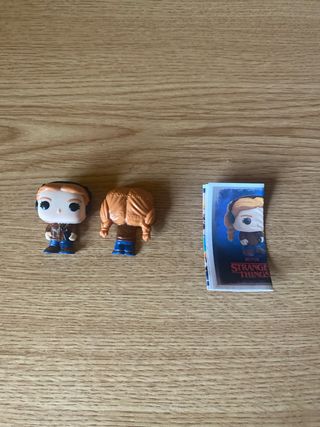 Figura de Funko Pop, inspirada en Stranger Things y proveniente de Kinder Joy. Es ideal para los fans de la serie y de las figuras. - Cada figura 2 euros. - Diseño de Stranger Things. - Colección Kinder Joy.