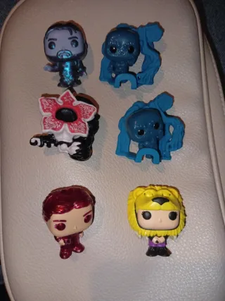 Figuras coleccionables de Funko Pop Kinder Joy, de la serie Stranger Things y de harry potter. Son 6 figuras en total, se pueden vender en lote o por separado:Eddie Demogorgon, Max, Hopper, Vecna, luna 2 euros cada una