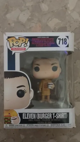 Figura Funko Pop! de Eleven de Stranger Things, edición Burger T-Shirt. - Número de figura: 718. - Personaje: Eleven. - Serie: Stranger Things.