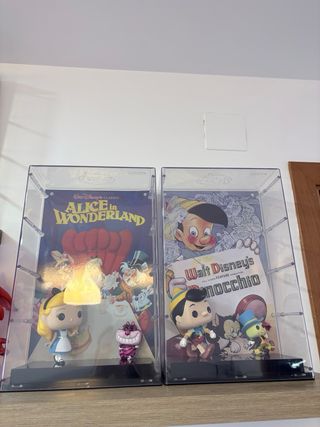 Vitrina de colección para figuras Funko Pop de Disney. Ideal para exhibir tus figuras favoritas. - Incluye figuras de Mickey Mouse fantasía, Dumbo, Cenicienta, Peter Pan, Alicia en el país de las maravillas y Pinocho. - Cada figura está protegida en su propia vitrina individual. - Diseños inspirados en películas clásicas de Disney. *si se compran varios, el precio puede ser negociable. *cada uno tiene el precio de 90€.