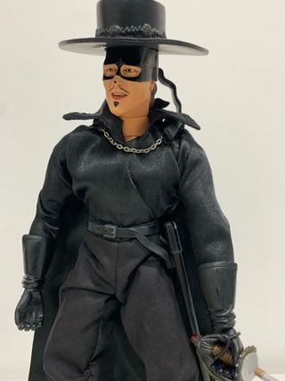 Figura de acción del personaje Zorro. 30cm de alto como nuevo - Atuendo negro completo. - Incluye sombrero y antifaz. - Espada detallada.