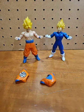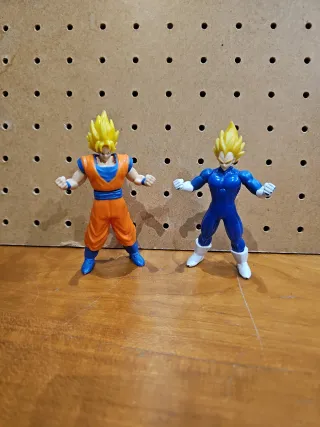 Set de figuras de acción de Dragon Ball Z, representando a Goku y Vegeta en sus icónicas transformaciones. SE PUEDEN VENDER POR SEPARADO - Figuras detalladas de Goku y Vegeta. - Incluye bases para exhibición. - Efectos de energía azul.