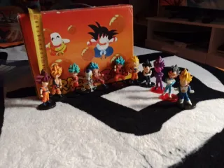 Conjunto de mini figuras de Dragon Ball. Lote de 11 figuras: 20€ Figura individual: 3€ - Personajes icónicos de la serie. - Ideal para coleccionistas. - Incluye figuras de Goku, Vegeta y otros.