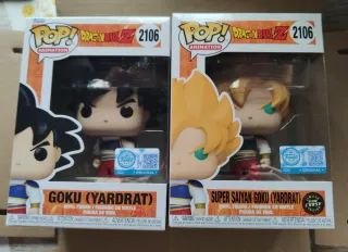 Dos figuras Funko Pop! de Dragon Ball Z. - Funko Pop! Animation 2106 Goku (Yardrat). - Funko Pop! Animation 2106 Super Saiyan Goku (Yardrat) - Limited Chase Edition. - Figuras de vinilo originales.