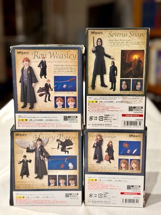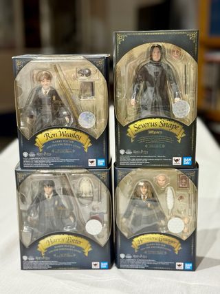 Se venden cuatro figuras SHFiguarts de Harry Potter. Están en perfecto estado y son ideales para coleccionistas. nunca abiertas y 100% originales. - Incluye figuras de Harry Potter, Ron Weasley, Hermione Granger y Severus Snape. - Figuras articuladas de la línea S.H.Figuarts de Bandai. - Basadas en las películas de Harry Potter. - Son una excelente adición a cualquier colección.