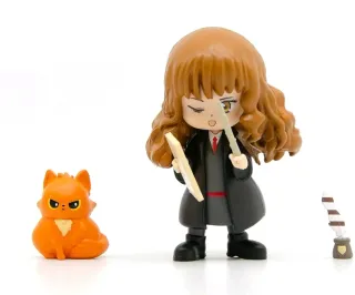 Figura coleccionable de Hermione Granger de Harry Potter de 6 cms de slto aprox. - Diseño estilo chibi o cápsula. - Incluye varita y libro. - Acompañada de una figura de gato. - Detalle de tintero con pluma.