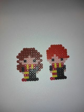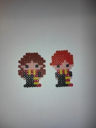 Figuras de Hermione Granger y Ron Weasly de la saga de Harry Potter hechas con Hamma.