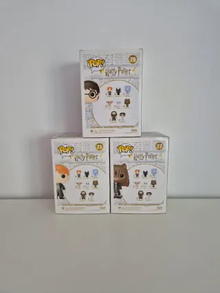 Colección de figuras Funko Pop de Harry Potter. Incluye varios personajes icónicos de la saga. - Funko Pop Harry Potter Pushing Trolley 135 precio 25 euros - Funko Pop Rubeus Hagrid 164 precio 25 euros - Funko Pop Harry vs Voldemort 119 (Movie Moments) 30 euros - Funko Pop Harry Potter 31 regalo está la gafa rota pero se puede pegar - Funko Pop Dobby 17 precio 15 euros - Funko Pop Ron Weasley 44 precio 12 euros - Funko Pop Harry Potter 112 precios 12 euros - Funko Pop Harry Potter 122 precio 11 euros