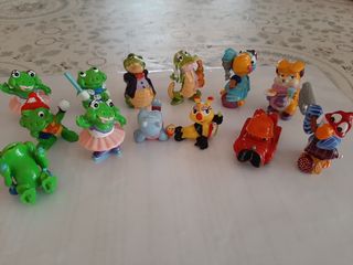13 figuritas de los años 90 de huevo Kinder, como ranitas, cocodrilos, coche...