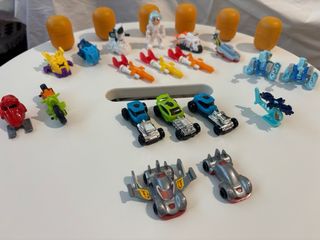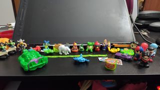 figuras de Pokémon pequeñas y de las antiguas, de mulan, de coches, superhéroes, Hulk, y más figuritas que voy encontrando, es decir que si te interesa tal vez te llevas más de lo que hay por el mismo valor. también se entregan las cápsulas de las figuras y la caja de ben 10)
