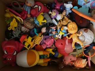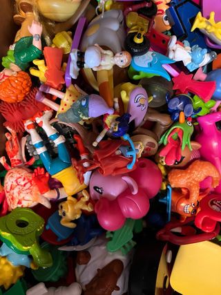 Lote enorme de mas de 3 kilos de figuras y muñecos de Macdonalds, huevos kinder y demás. Hay de todo, figuras de los Simpson, coches, super things (anuncio aparte en mi perfil), pitufos, smileys... todo revisado y en muy buen estado. Escucho ofertas. Se vende el lote completo, se envia a cualquier lugar o recoger en mano