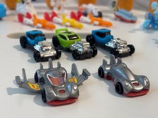 Vendo SET de 19 figuras de huevos Kinder Sorpresa Son juguetes pequeños y coloridos, ideales para coleccionistas o simplemente para jugar Los Huevos Kinder Sorpresa son huevos de chocolate con leche que contienen una cápsula de plástico con un pequeño juguete o figura coleccionable en su interior Estos juguetes a menudo requieren ensamblaje y están diseñados para estimular el juego y el aprendizaje en los niños Incluye: 3 coches de la coleccion de Hot Wheels 2 coches de carrera 2 robots de inspeccion en el espacio 7 naves espaciales 1 astronauta con extraterrestre 1 Astronauta 1 Moto 1 Helicoptero 1 Moto esqui Compralo ya!