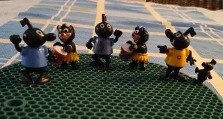 Conjunto de figuras de plástico de huevos Kinder. - Personajes de dibujos animados. - Incluye tambores y vestimenta. - Ideal para coleccionistas.