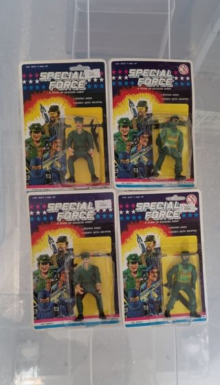 Muñecos fuerzas especiales tipo Gi Joe. Originales fabricados en los 80/90. NUEVOS A ESTRENAR. Blisters sin desprecintar. presentan algunas pequeñas marcas y arrugas de almacenaje y paso del tiempo según fotos detalladas. Precio por los 4 , también sueltos a 7,50 unidad. antiguo antigua retro vintage colección coleccionismo coleccionista recuerdo de infancia yo fui a egb cuéntame como pasó expo 92 Sevilla kiosco comansi Yolanda exin juguetes playmobil play station móvil lego masters del universo indios y vaqueros pvc figura figurita figuritas huevo kinder montaman montaplex rico paya jyesa clim ibertren castillos juguetes