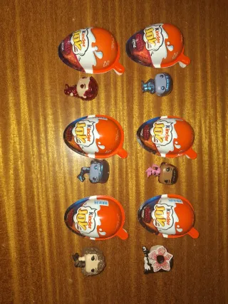 Colección de muñecos de la serie Stranger Things, provenientes de huevos Kinder Sorpresa. Son figuras coleccionables. - Personajes de Stranger Things. - Ideales para fans de la serie.
