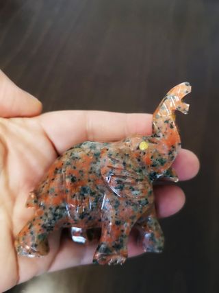 Figura de elefante tallada de piedra jaspeada en tonos rojizos. - Tallado a mano - Diseño con la trompa levantada. #figura, escultura, tallada, piedra, jade, suerte