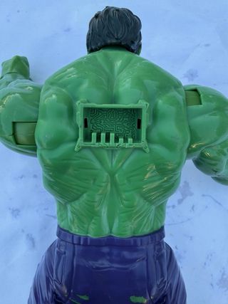 Figura de Hulk de Marvel (Hasbro 2017) en buen estado general. ✔️ Tamaño grande (aprox. 30 cm) ✔️ Articulaciones en brazos ✔️ Ideal para jugar o colección 🔹 IMPORTANTE: le falta la pieza/accesorio trasero (ver fotos), por eso el precio es más bajo. Tiene algún pequeño roce del uso, pero está bien conservado. 💥 Perfecto para fans de Hulk o para niños.